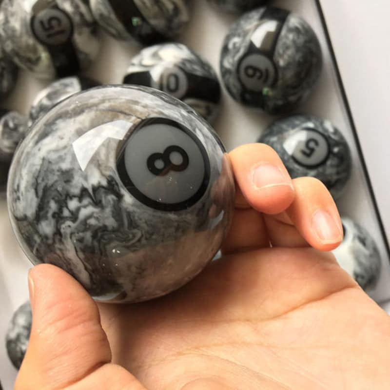 This complete set of 16 billiard balls features a marbling design, providing a unique visual experience that adds sophistication to any game. With the standard 57.2mm (2 1/4 inch) size, each ball is perfectly balanced for precise shots and smooth play, making it ideal for both casual and competitive play.